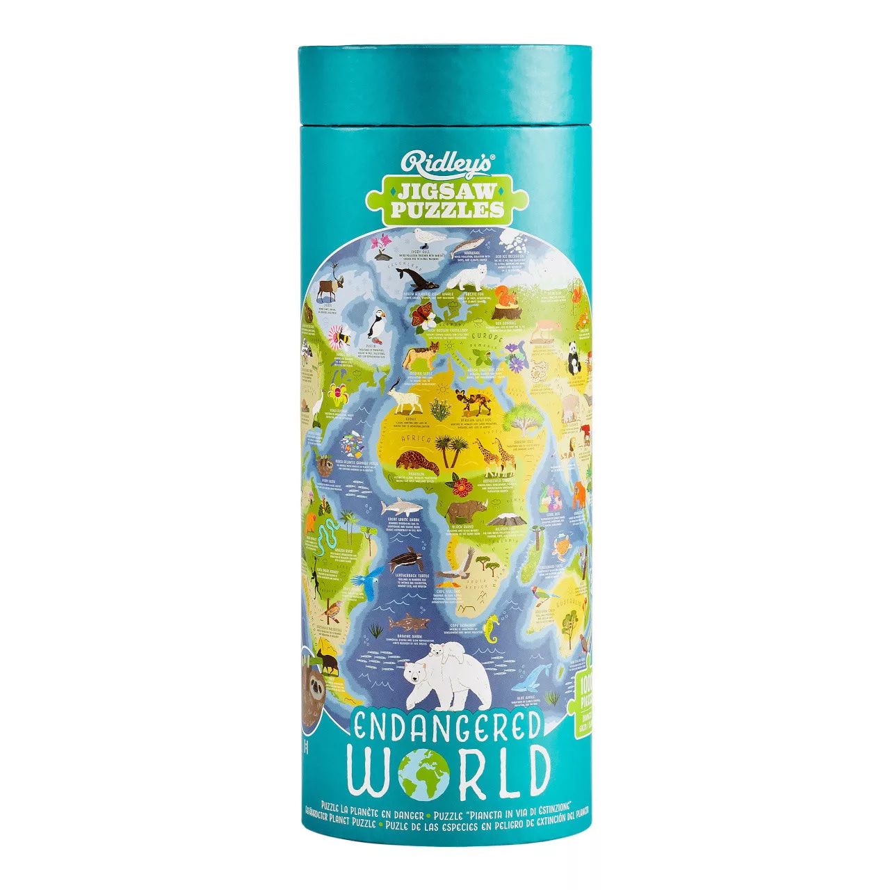 Ez a gyönyörűen illusztrált, kör alakú 1000 darabos puzzle a világ legveszélyeztetettebb fajait és azokat a kihívásokat mutatja be, amelyekkel az élőhelyükön szembenéznek. Kirakás közben több mint 30 veszélyeztetett állatot fedezhettek fel a jegesmedvétől a ritkább addaxig, a lundától az Észak-Atlanti-óceán élővilágáig. A kész kép ráadásul „tanít” is: minden állathoz és környezethez kapcsolódóan új információkat tudhattok meg, és akár inspirációt is adhat, hogyan lehet tenni a természetvédelemért. A kör formátum külön előny, mert könnyebb körbeülni és együtt dolgozni rajta. A puzzle papír csomagolásban érkezik, hogy ne legyen szükség egyszer használatos műanyagra.