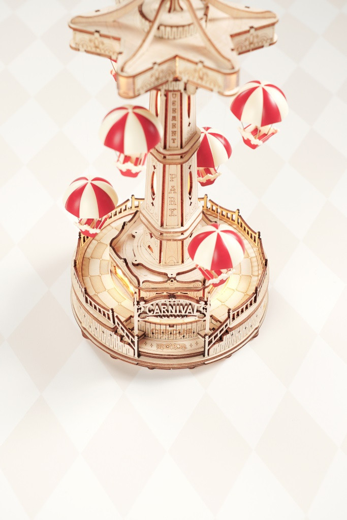 RoboTime – 3D zenedoboz puzzle: Színes ejtőernyős körhinta