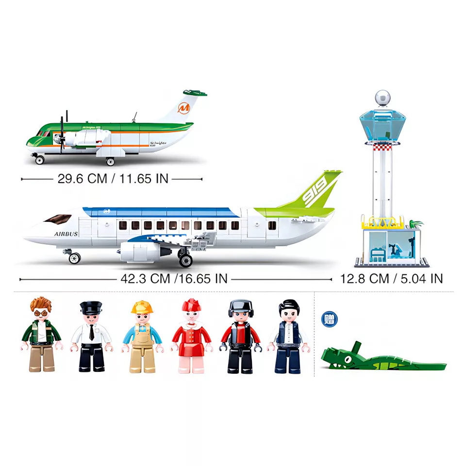 A Sluban Airport Repülőtér két repülővel nagyobb, látványos építőkészlet a repülős kalandok kedvelőinek. A szett 731 elemet és 6 figurát tartalmaz, közepes nehézségi szintű, így 6 éves kortól ajánlott. A dobozban részletes összeszerelési útmutató is található.