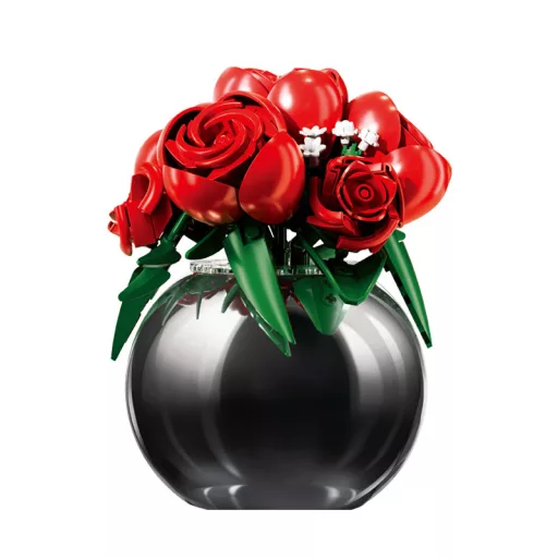Ez a piros rózsás építőjáték elegáns választás, ha tartós és látványos dekorációt keresel. A részletgazdag virágok, a zöld levelek és a váza együtt szép összhatást adnak, így ajándéknak is igazán kedves lehet.