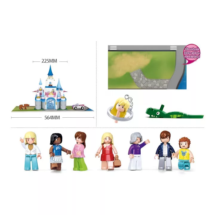 A Sluban Romantikus kastély látványos építőkészlet, amely igazán különleges játékélményt ad a mesés történetek kedvelőinek. A szett 818 elemet, 6 figurát és egy alaplapot tartalmaz, közepes nehézségi szintű, ezért 6 éves kortól ajánlott. A csomagban egy kulcstartó ajándék is helyet kapott.