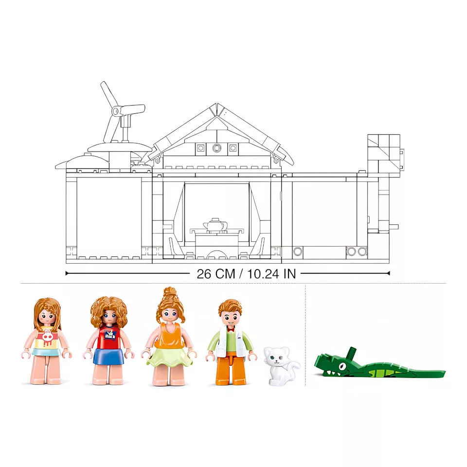 A Sluban Girls Dream Az új otthonunk hangulatos, részletgazdag készlet, amely sok családos szerepjátékhoz ad ötletet. A szett 410 elemet és 4 figurát tartalmaz, közepes nehézségi szintű, ezért 6 éves kortól ajánlott. Jól kombinálható az M38-B0821 A szomszéd háza készlettel is.