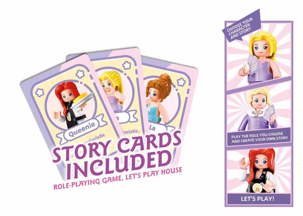A csomag történetkártyákat is tartalmaz, így még könnyebb saját meséket kitalálni. A minőségi, tartós ABS műanyag elemek jól illeszkednek, a készlet pedig más ismert építőkkel is kompatibilis, így könnyen bővíthető.
