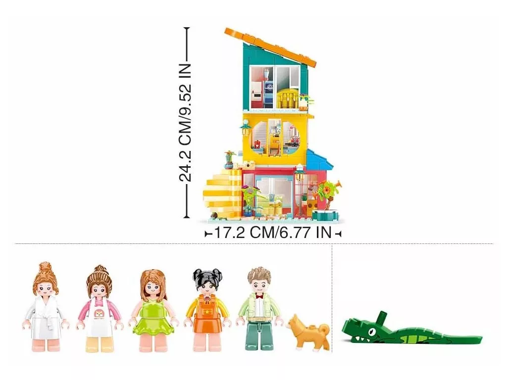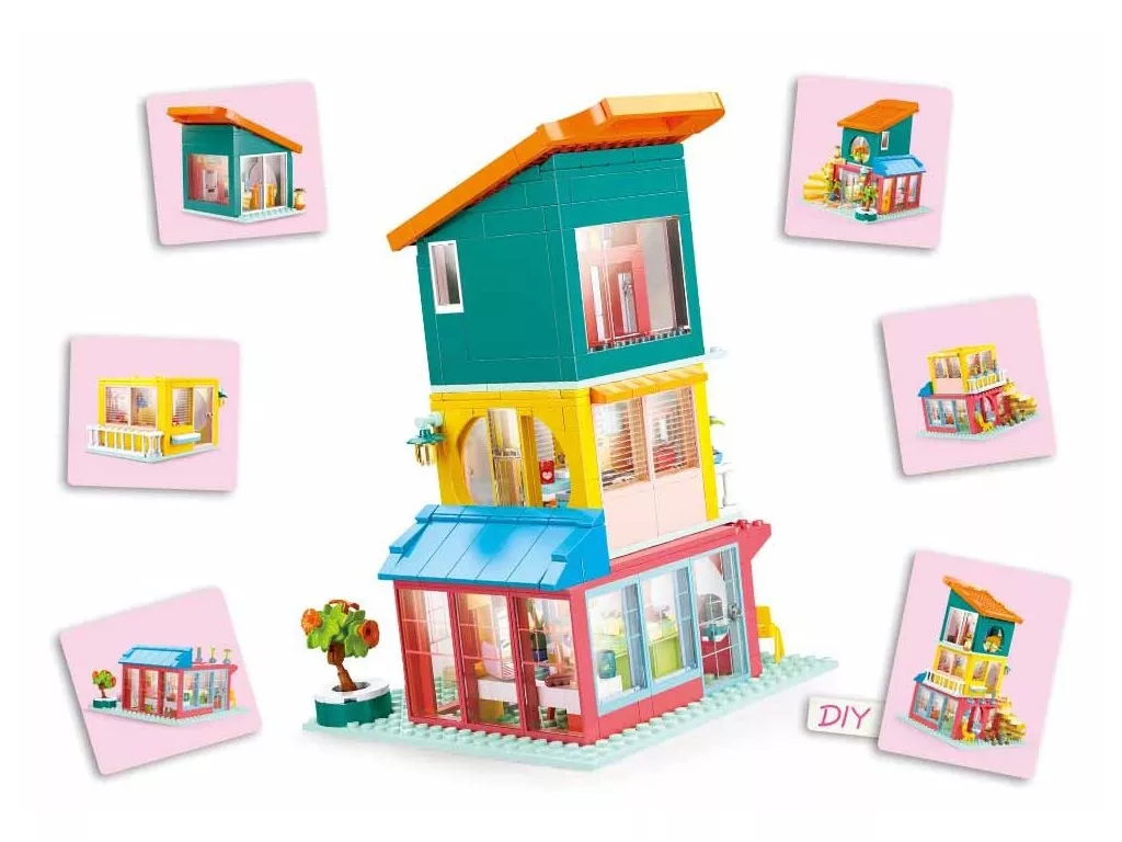 A Sluban Girls Dream Háromszintes ház igazán látványos építőkészlet, amely sok kreatív történethez ad ötletet. A szett 571 elemet tartalmaz, a csomagban 5 figura, egy kutyus és egy mackó is helyet kapott, ezért 6 éves kortól ajánlott. A háromszintes ház többféle elrendezésben is megépíthető.