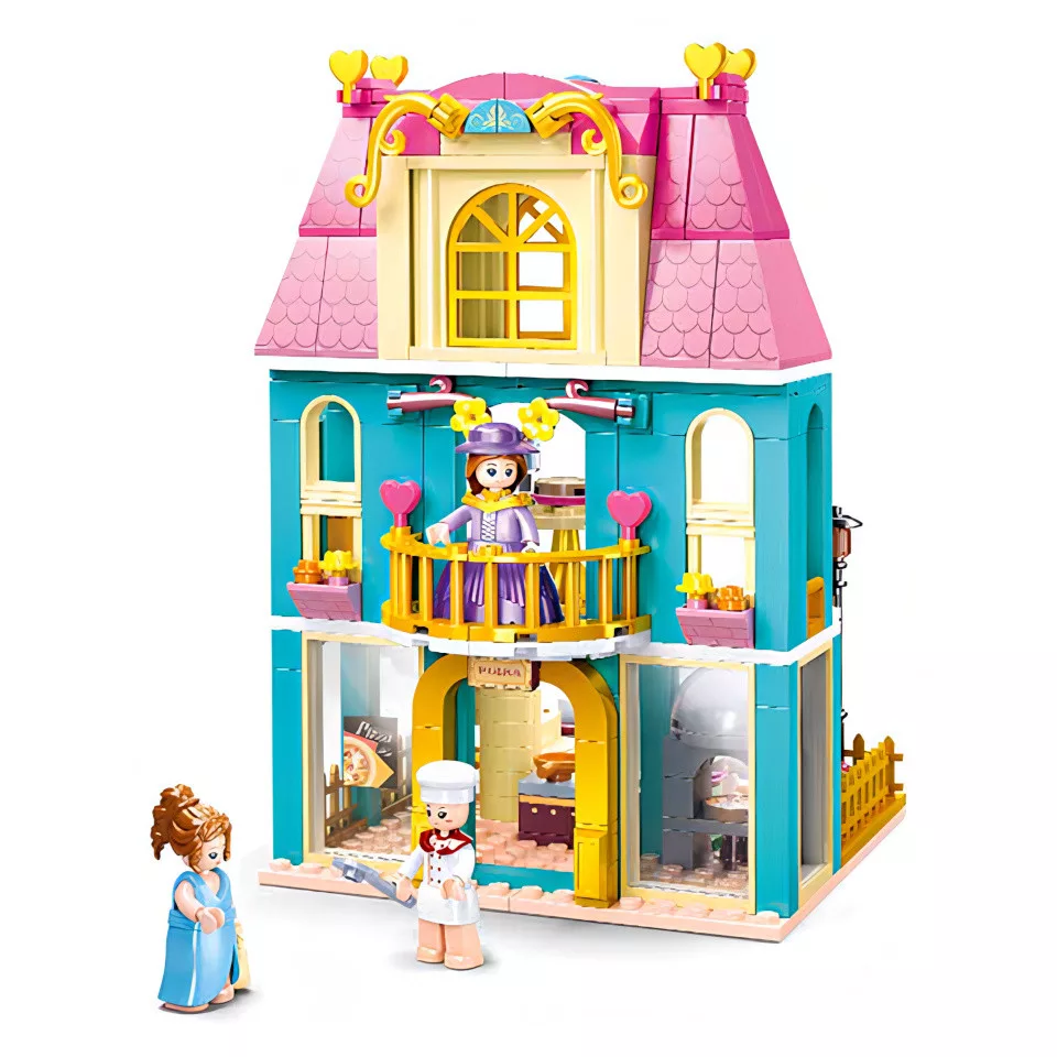 A Sluban Girls Dream Village Kétszintes ház tetőtérrel kedves, hangulatos építőkészlet, amely sok szerepjátékhoz ad ötletet. A szett 287 elemet és 3 figurát tartalmaz, közepes nehézségi szintű, ezért 6 éves kortól ajánlott. Jól illik az M38-B0876 áruház készlet mellé is.