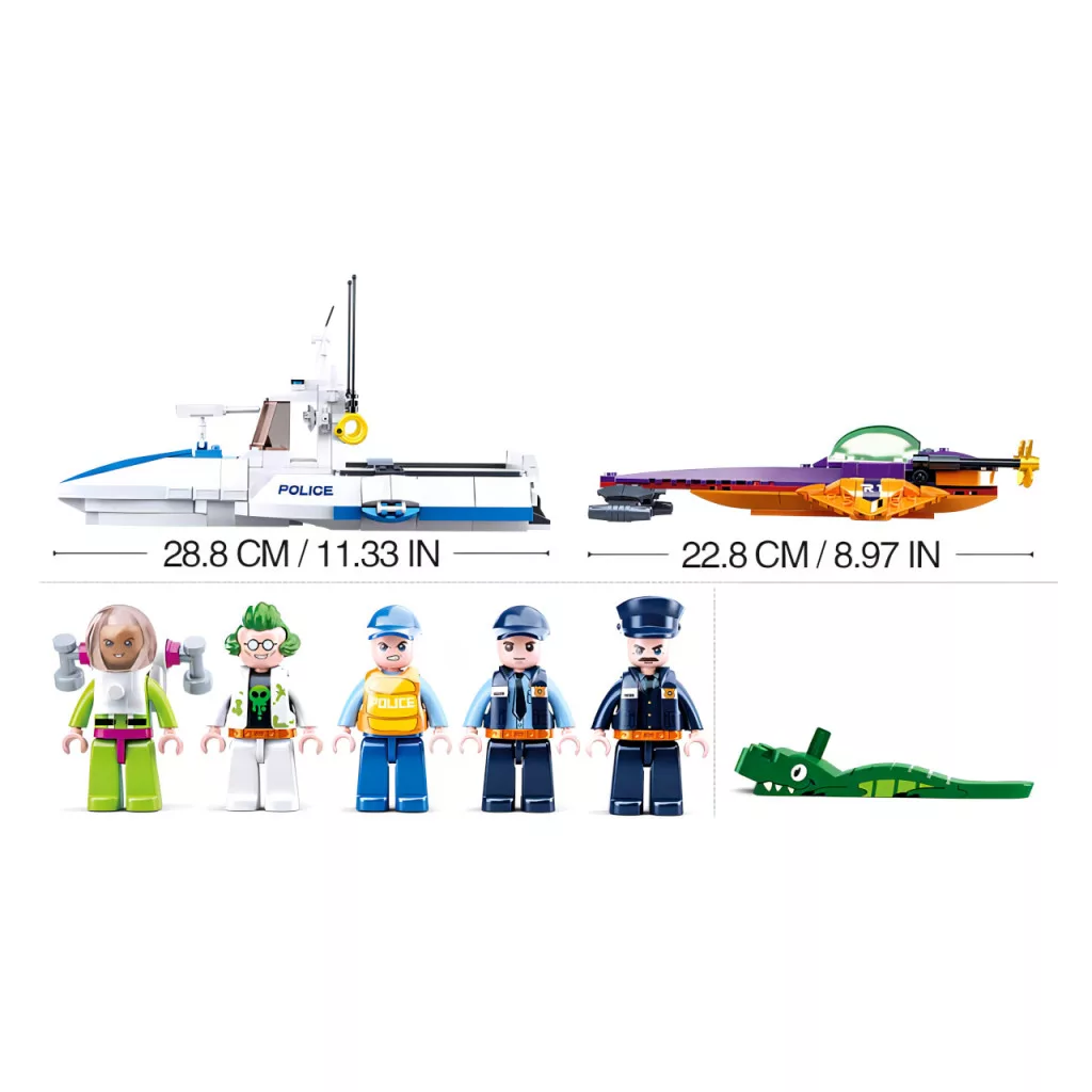 A Sluban Tengeri bandita elfogása izgalmas, kalandos készlet, amely sok akciódús szerepjátékhoz ad alapot. A készlet 559 elemet és 5 figurát tartalmaz, közepes nehézségi szintű, ezért 6 éves kortól ajánlott. A tengeri téma és a több szereplő együtt igazán mozgalmas játékot kínál.