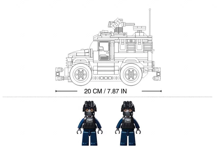 A minőségi, tartós ABS műanyag elemek jól illeszkednek egymáshoz. Az innovatív figurák mozgatható testrészei még változatosabbá teszik a szerepjátékot, a készlet pedig más gyártók hasonló építőivel is kompatibilis. A távirányítóhoz 2 darab AAA elem szükséges, ezek nem részei a csomagnak.