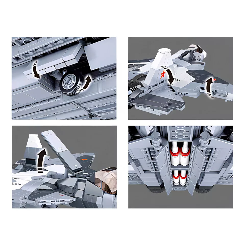 A Sluban Model Bricks Su-57 sugárhajtású vadászrepülő 2 az 1-ben készlet igazán izgalmas választás a repülős modellek kedvelőinek. A szett 893 elemet és 1 figurát tartalmaz, közepes nehézségi szintű, ezért 8 éves kortól ajánlott. Az építést útmutató segíti.