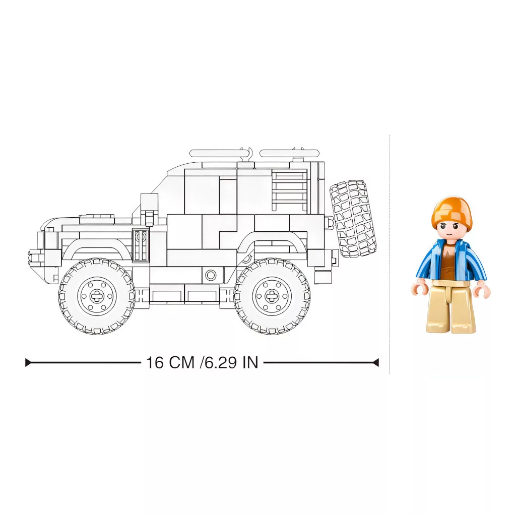 Ez a részletgazdag SUV építőjáték remek választás a masszív járművek kedvelőinek. A karakteres kialakítás és a figurával kiegészített szett még izgalmasabbá teszi az építést és a későbbi játékot is.