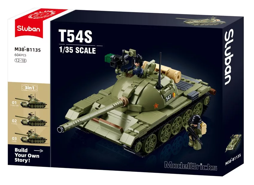 A Sluban Model Medium Tank MBT 3 az 1-ben különösen jó választás azoknak, akik többféle építési lehetőséget keresnek egy készletben. A szett 604 elemet és 2 figurát tartalmaz, közepes nehézségi szintű, ezért 12 éves kortól ajánlott. Egy csomagból 3 különböző közepes tankmodell építhető meg.