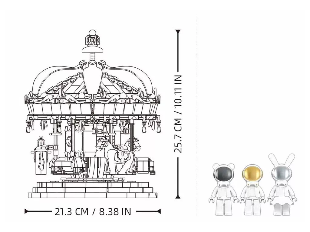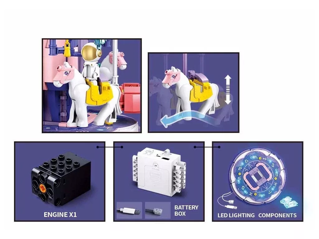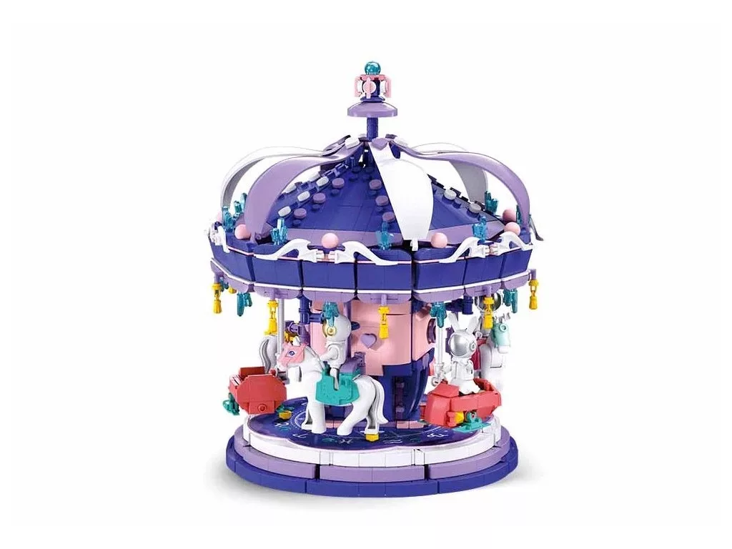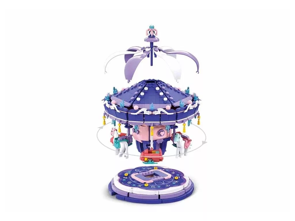 A Sluban Pleyerid Körhinta látványos, funkciókkal teli építőkészlet, amely igazán különleges darab lehet. A szett 1749 elemet és 3 figurát tartalmaz, LED világítással, mozgó lovacskákkal és USB kábeles működéssel, ezért 14 éves kortól ajánlott. Az elkészült körhinta forog, a lovak pedig fel-le mozognak.