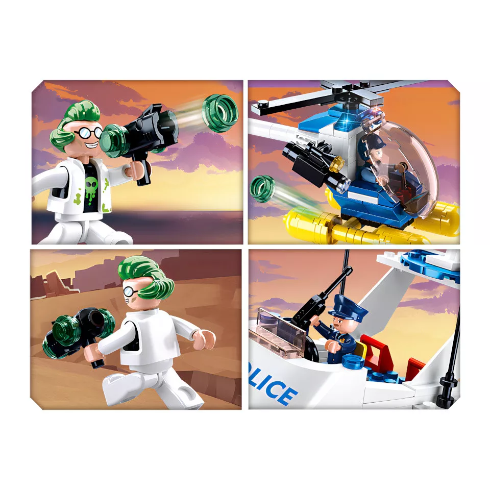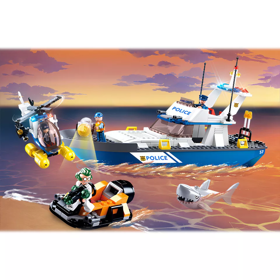 Ez a mozgalmas rendőrségi építőjáték remek választás az akciódús jelenetek kedvelőinek. A hajó, a helikopter és a tolvaj csónakja együtt igazán izgalmas játékvilágot teremt a gyerkőcöknek.