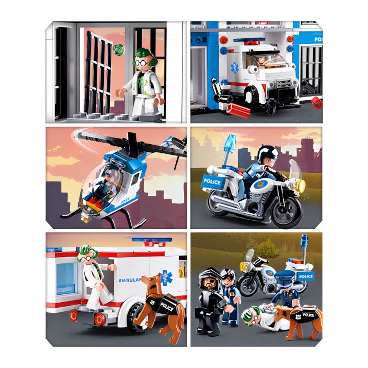 Ez a részletgazdag rendőrségi építőjáték izgalmas szerepjátékokra ad lehetőséget. A 605 darabos készletből mozgalmas jelenet építhető, amely a figurákkal együtt még több játékötletet kínál.