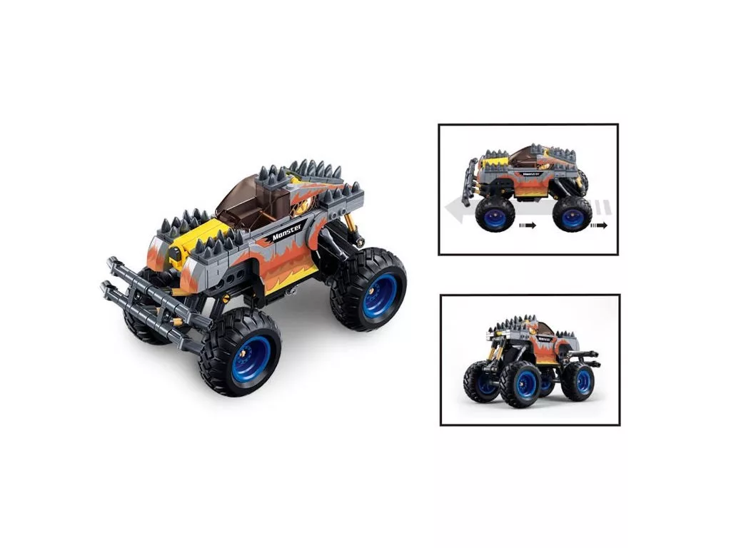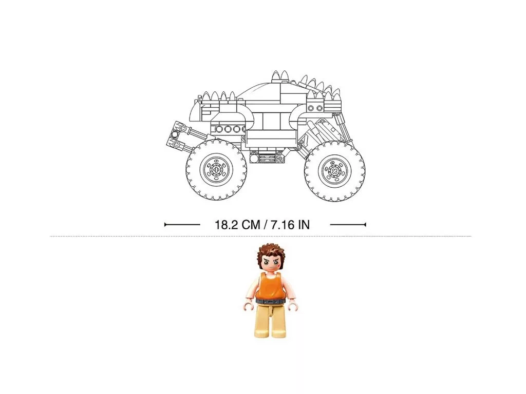 A szürke karosszériát lángok és tüskés részletek díszítik, a nagy kerekek pedig karakteres megjelenést adnak a modellnek. A tartós ABS műanyag elemek jól illeszkednek, a készlet pedig más ismert építőkkel is kompatibilis.