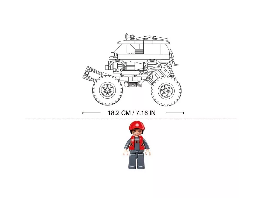 A nagy kerekek és az off-road kialakítás igazán karakteres megjelenést adnak a modellnek. A tartós ABS műanyag elemek jól illeszkednek, a mozgatható figura pedig még élvezetesebbé teszi a szerepjátékot. A készlet más építőkkel is kompatibilis.