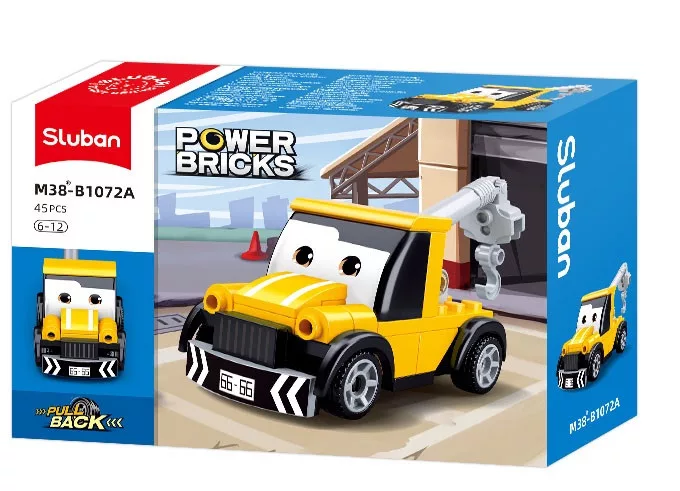 Sluban Power Bricks M38-B1072A Felhúzhatós autó szemekkel – Sárga vontatóautó építőjáték