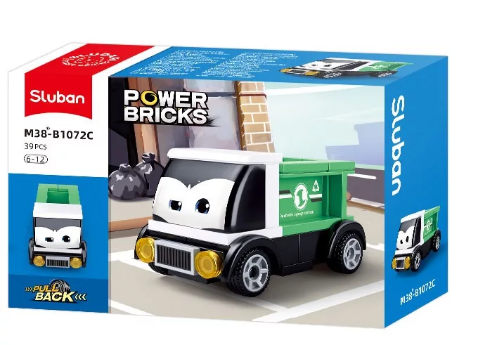 Sluban Power Bricks M38-B1072C Felhúzhatós autó szemekkel – Zöld teherautó építőjáték