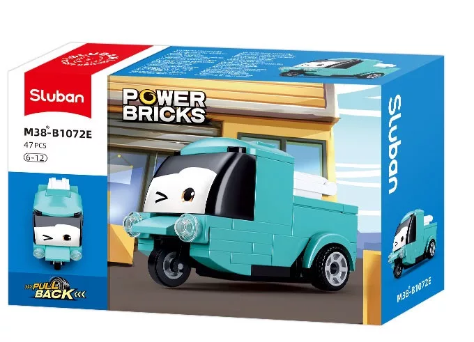 Sluban Power Bricks M38-B1072E Felhúzhatós autó szemekkel – Türkiz teherautó építőjáték