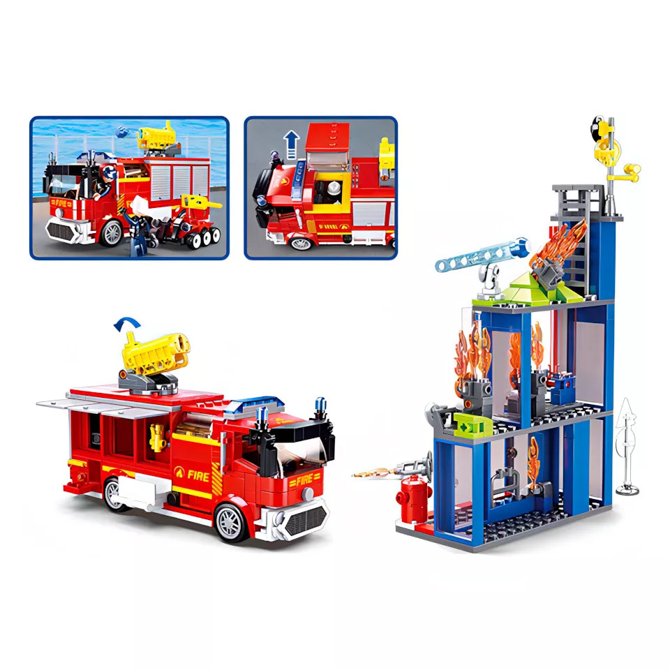 Sluban Tűzoltók M38-B0967 Nagy tűzoltóautó ágyúval és guruló robottal építőjáték