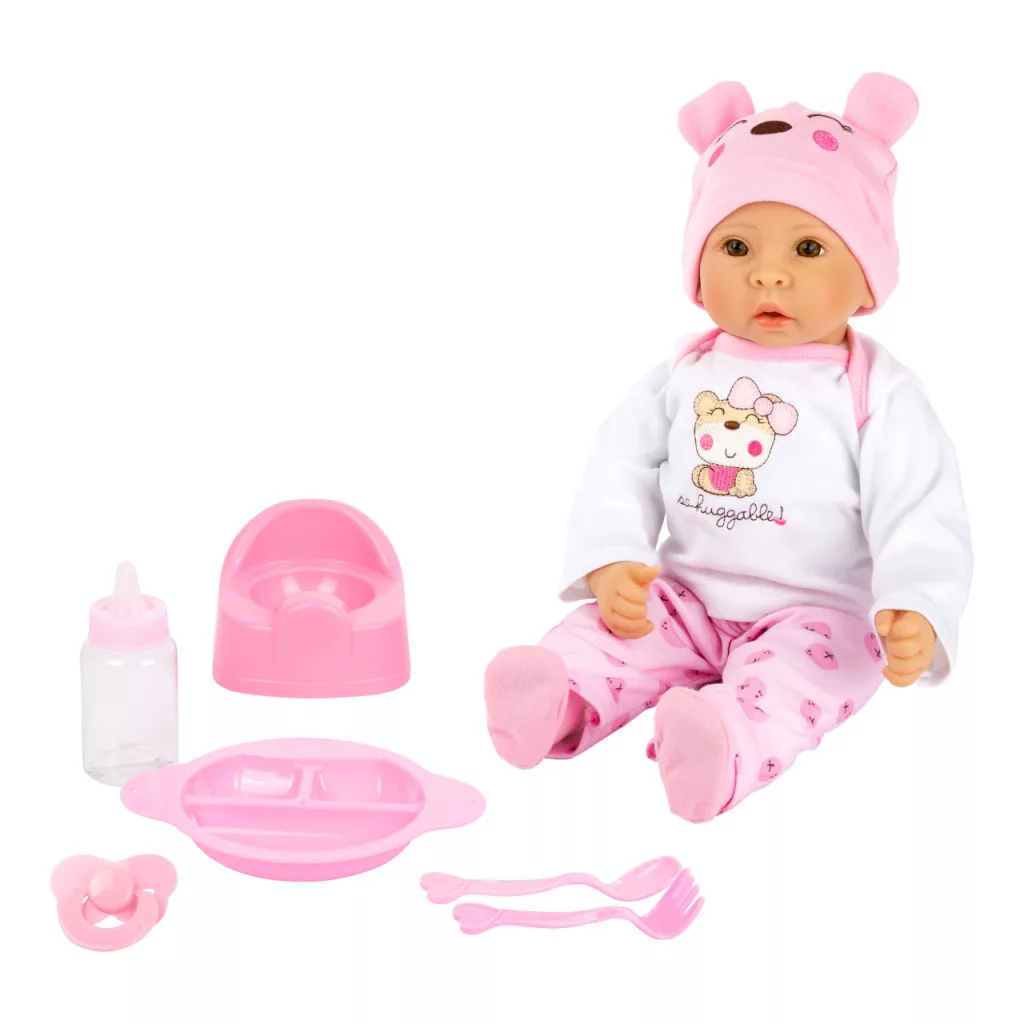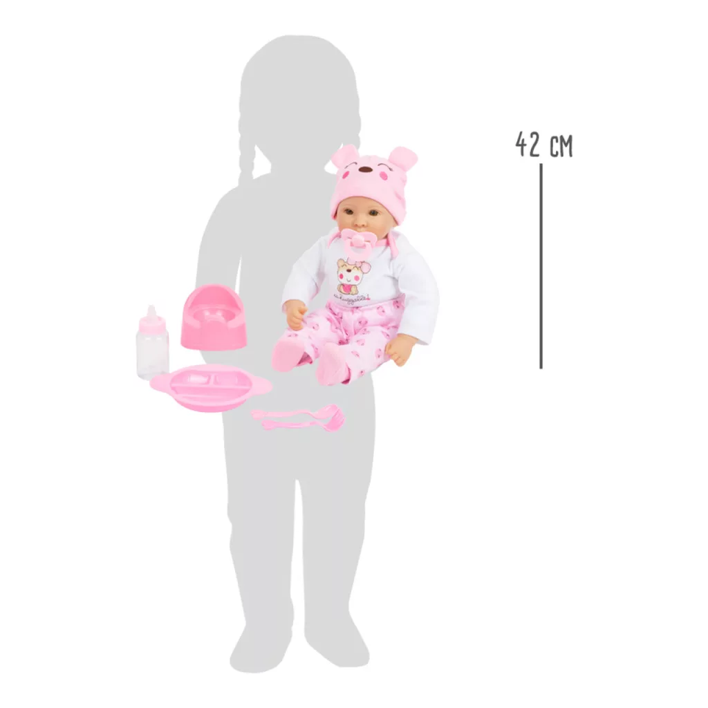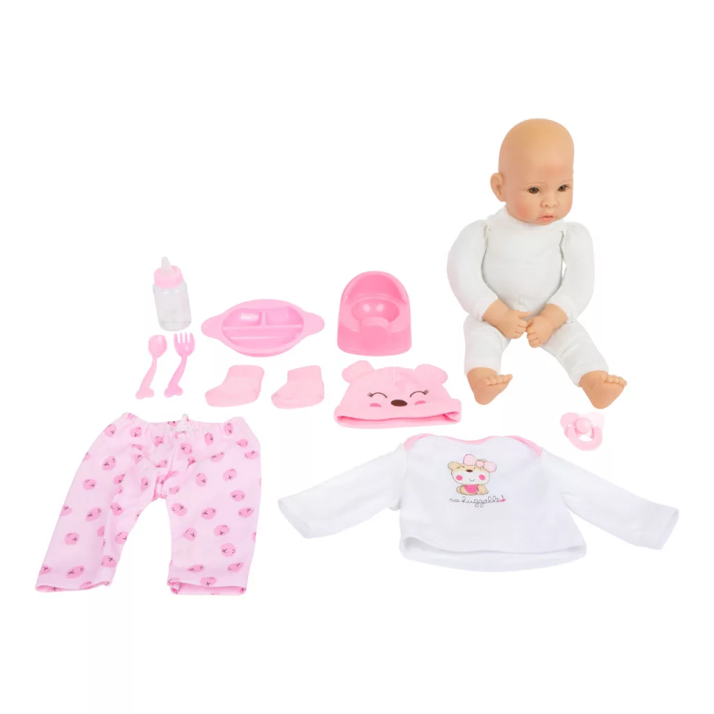 Puha testű, ölelni való baba sok kiegészítővel az öltöztető és szerepjátékhoz. Alapdarab minden babagyűjteménybe.