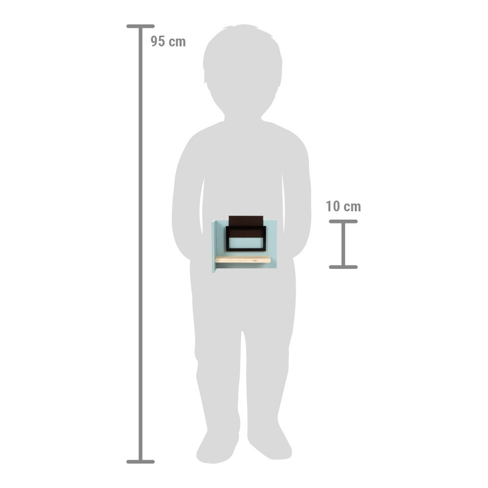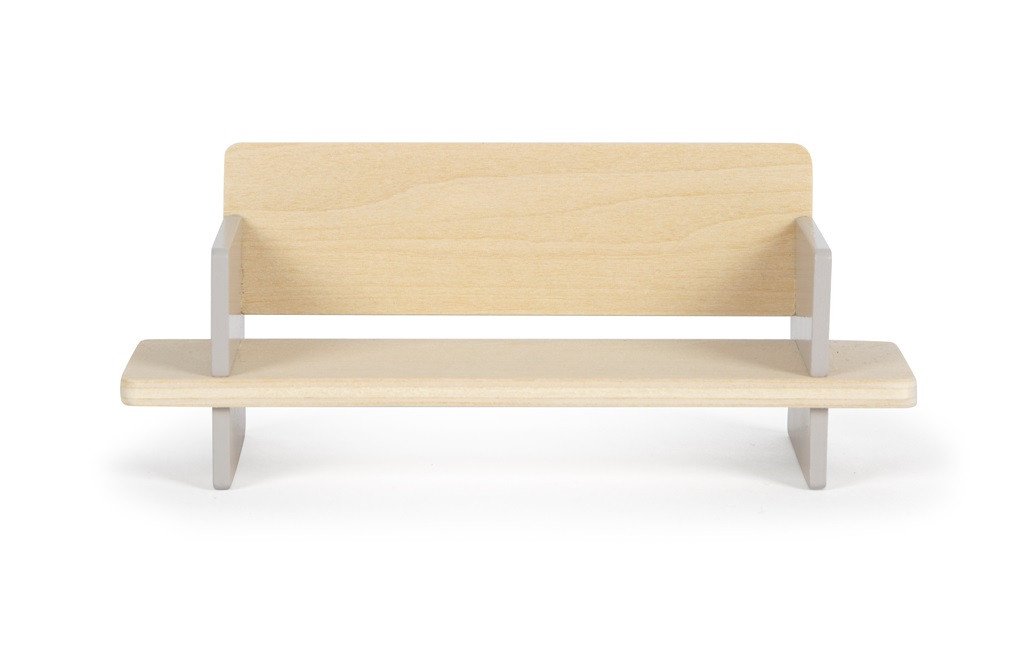 Stílusos nappali miniatűrben: kényelmes kanapé három párnával, elegáns dohányzóasztal, filc szőnyeg, hajlítható íves lámpa és szobanövény - valamint polcos tévé, kétoldalas „csatornakártyákkal”. A gyerekek saját képeiket is becsúsztathatják, így ők rendezik a műsort! A berendezés közben fejlődik az esztétikai érzék és a finommotorika, a szerepjáték pedig szociális készségeket erősít. Modern dizájn, aprólékos részletek - a babaház központi helyisége.