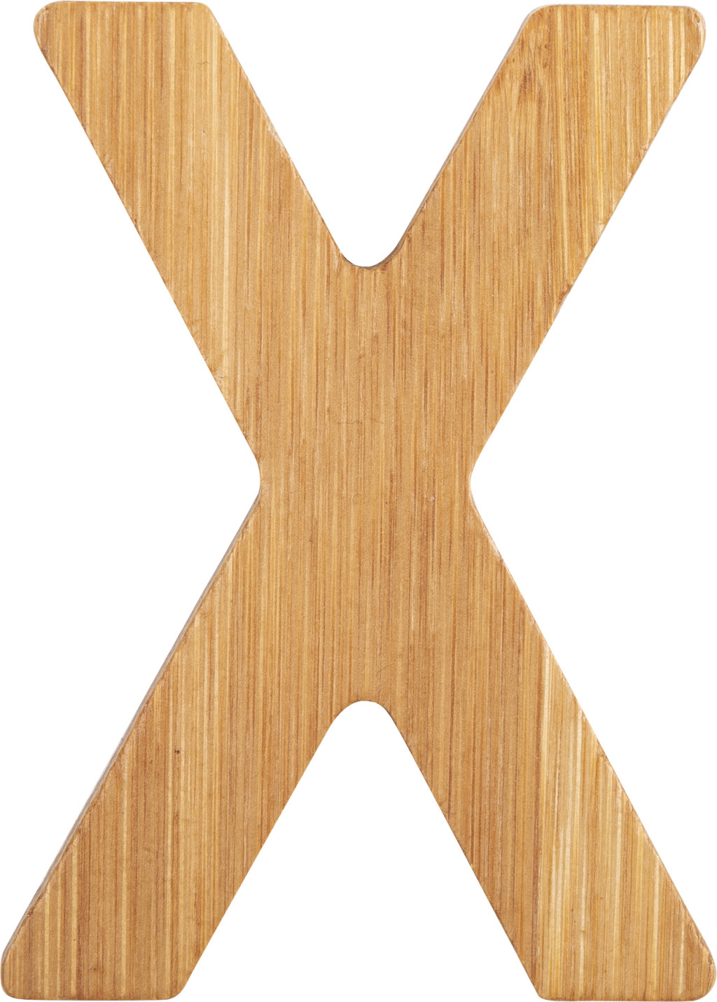 Bambusz „X” betű; tiszta forma, kellemes tapintás, dekorációhoz és betűzős játékokhoz.