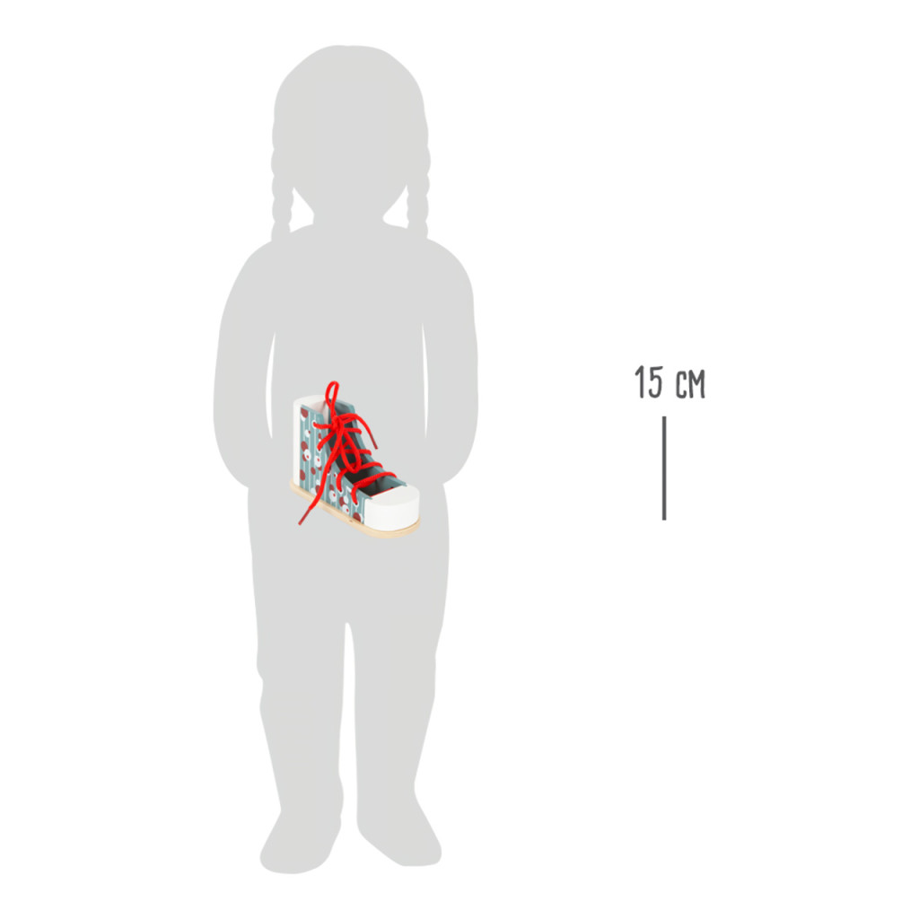 Modern fa tanulócipo, amelyben a gyerekek játékosan gyakorolhatják a cipőfűző befűzését és a masni kötést. Fejleszti a türelmet, a kézügyességet és a finommotorikát. Stabil, súlyos kialakításának köszönhetően jól bírja a gyakorlást. Óvodás kortól ajánlott.