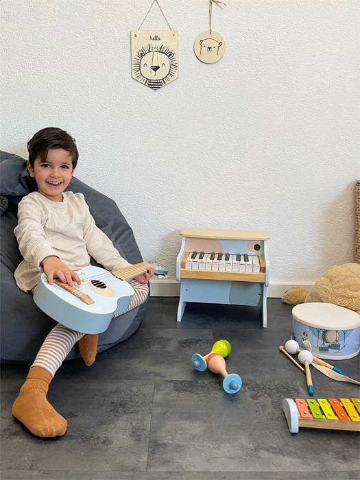 • Zenei játékok: xilofonok, dobok, gitárok és egyéb gyerekhangszerek, melyek a zenei érzéket és a ritmusérzéket fejlesztik.
