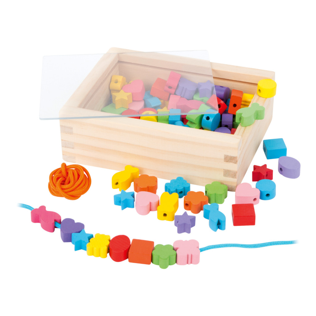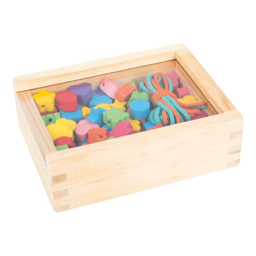 Small Foot - Fa fűzhető gyöngyök formákkal, dobozban - JátékManufaktúra