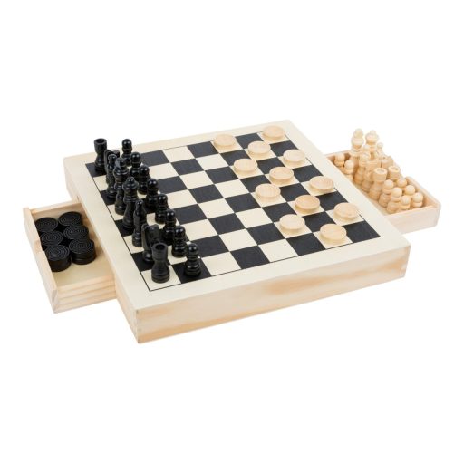 Három klasszikus egyben. A bábuk a táblák alatti fiókokban tárolhatók - biztonságos szállítás, koncentrációt fejlesztő játékok.
