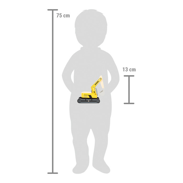 Masszív fa kotrógép a kis építőmestereknek! A felépítmény 360°-ban forgatható, a gém két ponton mozgatható, a kanál kézzel könnyen irányítható. A kerekek „lánctalp” burkolat alatt rejtve adják a valódi munkagép-hatást, a gumírozott futás kíméli a padlót. Stabil, tartós felépítése hosszú játékot bír; a rakodás közben fejlődik a szem-kéz koordináció, a térérzékelés és a problémamegoldás. Remek szerepjáték egyedül és közösen is - kötelező darab minden gyerekmunkaterületre.
