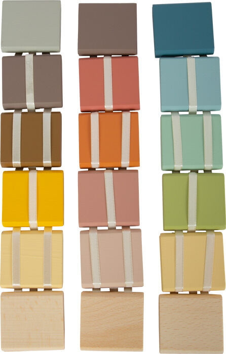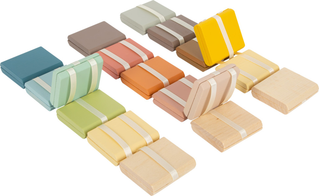 Hat elemből álló klasszikus fa játék: az első elem lendítésére a többi „varázslatosan” végigdobog. Modern színek, sima felület; logikai gondolkodást és kíváncsiságot ébreszt kicsikben-nagyokban.