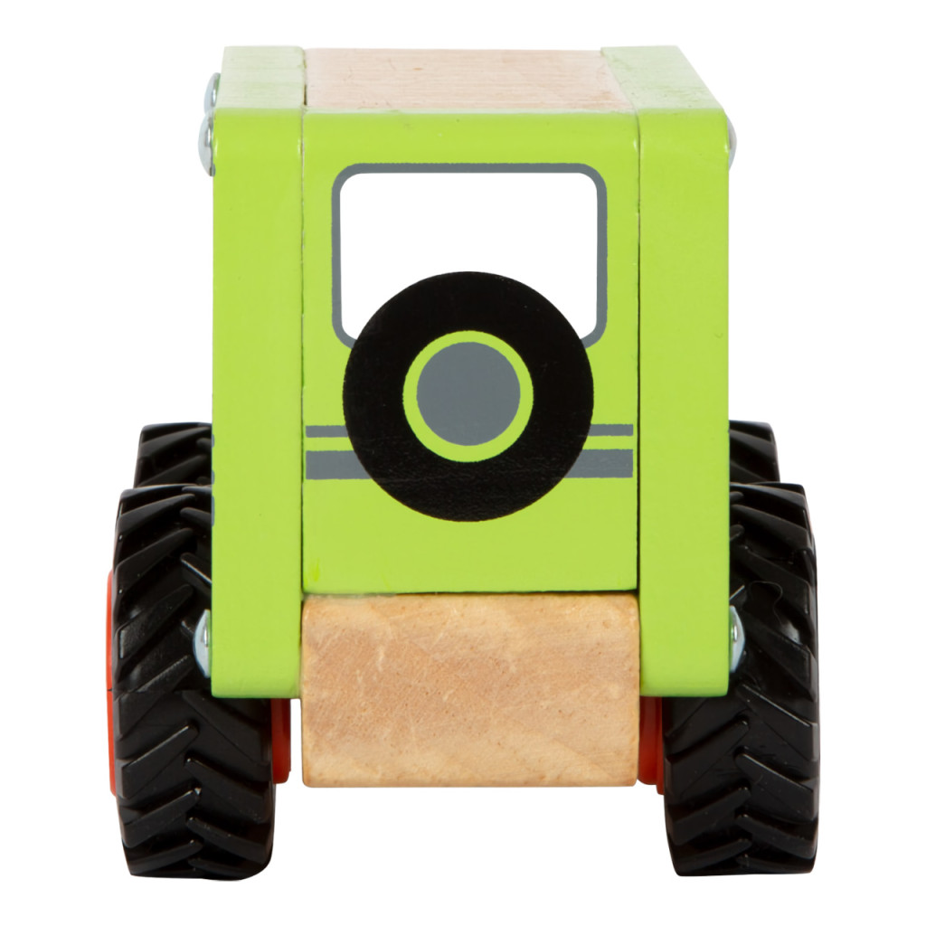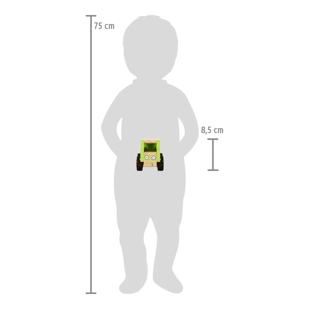 Masszív, FSC® fa SUV gumírozott kerekekkel, sok rakodóhellyel. Nyílások a könnyű fogáshoz; nyomtatott csörlő és pótkerék; „arc” az elején a szerepjátékhoz.