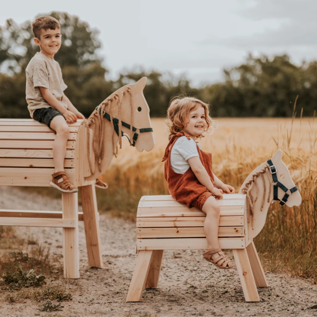 • Mozgásfejlesztő játékok: hintalovak, triciklik és futóbiciklik, amelyek a mozgáskoordinációt erősítik.