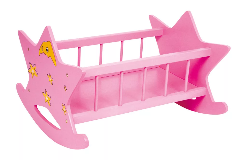 Masszív fából készült baba bölcső, amely hintáztatható, így a babák könnyen álomba ringathatók benne. Oldalsó rácsai lehetővé teszik, hogy a „kis anyukák” mindig láthassák babájukat. A hátlap és a fejvég csillagmintával díszített, amely játékos és kedves megjelenést kölcsönöz. Strapabíró és stílusos kiegészítő minden babaszobához.