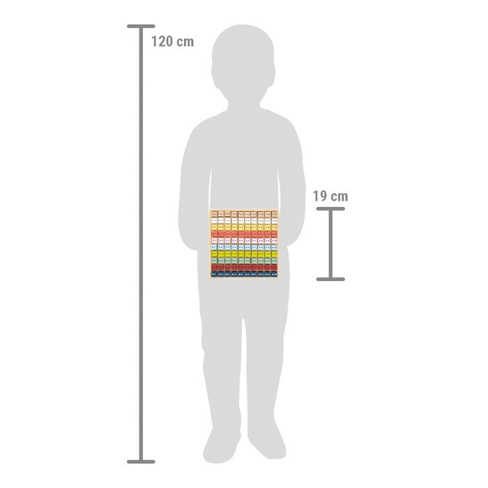 FSC® fa tanulójáték 0-20-ig. Színes kockák feladatokkal az egyik, megoldással a másik oldalon; a tálcába illeszkednek, nem csúszkálnak. Finommotorika és számolási készség fejlesztése; útra is praktikus.