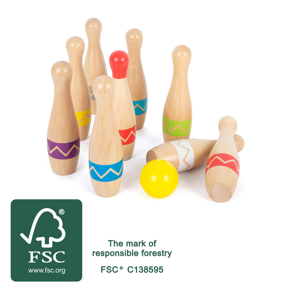 9 darab tömörfa teke + 2 fa golyó modern mintával. Beltéren és kültéren is használható, tárolótáskával. Játékosan fejleszti a célzást és a mozgáskoordinációt.