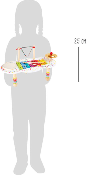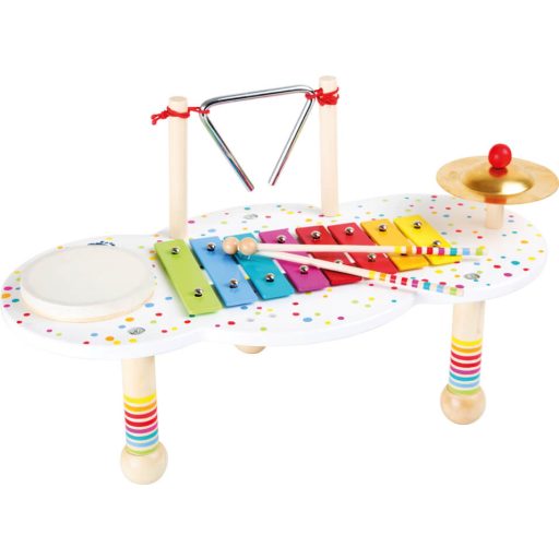 Színes, fából készült zenélő asztalka, amely játékosan vezeti be a gyerekeket a zene világába. A xilofon, ütőhangszerek és a különféle hanghatások segítségével a kicsik megtanulják a ritmust, a hangokat és a dallamokat. Fejleszti a hallást, a kéz-szem koordinációt és a kreativitást. Kiváló eszköz a közös zenéléshez, amely örömet okoz a család minden tagjának. Egy játék, amely egyszerre tanít és szórakoztat.