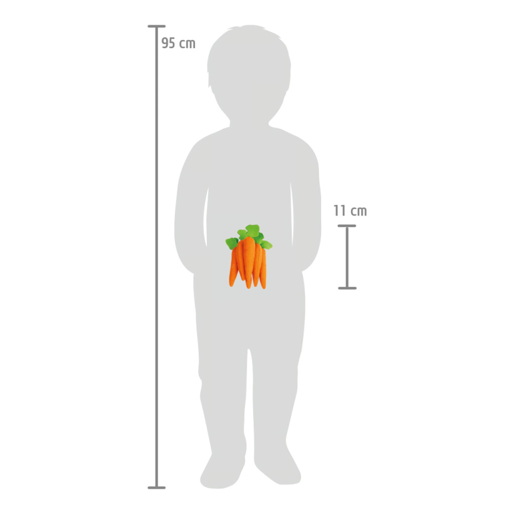 Ez a 7 darab filcből készült répa színes és vidám kiegészítője minden gyerekkonyhának és játékbolt saroknak. Élethű megjelenésük játék közben segíti a gyerekeket a szerepjátékban, miközben fejleszti a fantáziájukat és kreativitásukat. Az egészséges zöldségvilág játékos bemutatása ösztönzi a kicsiket a tudatos étkezés iránti érdeklődésre is. Ideális kiegészítő a gyerekkonyhákhoz, boltocskákhoz és szerepjátékhoz.