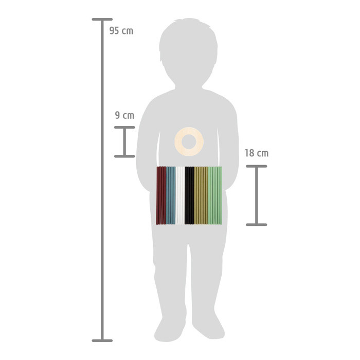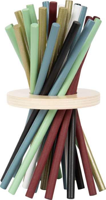 Újragondolt mikádó: a fa egyensúlygyűrűbe állított pálcákat dobókocka színe alapján kell kihúzni, gyűrűledobás nélkül. Nagyméretű, könnyen fogható pálcák; játék és dísztárgy egyben.