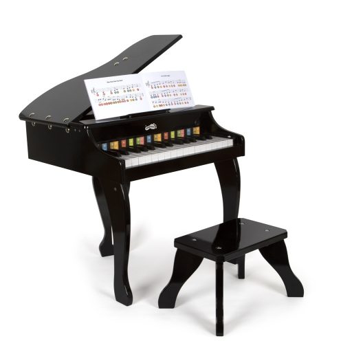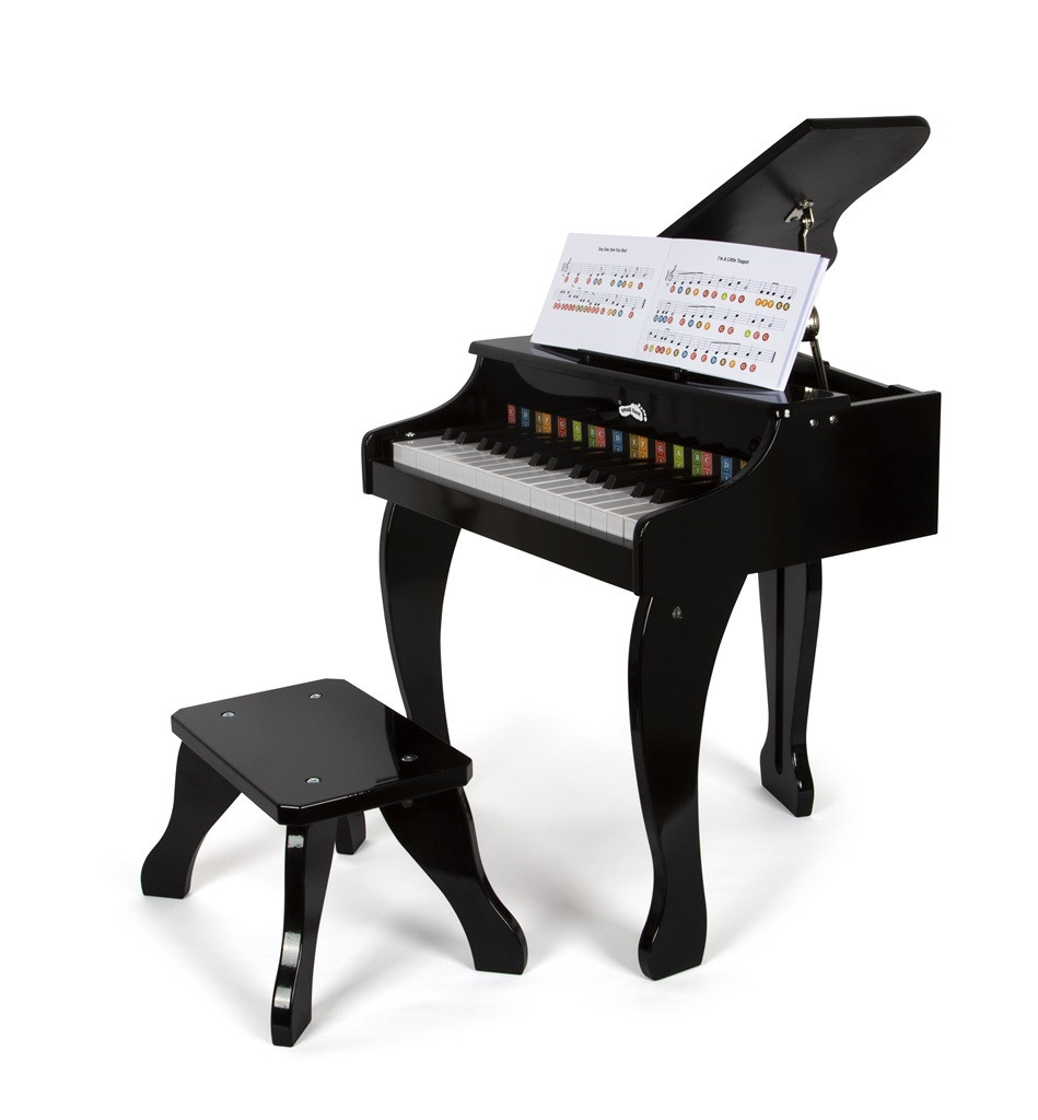 Elsőrangú hangszer a kis zenészeknek! Fényes fekete, kottatartóval és felnyitható tetővel, tiszta, szép hangzással. A billentyűk fölötti színes sáv és a dalosfüzet segíti az első dallamokat, fejleszti a ritmus- és hangérzéket. 4×AA elem szükséges (nem tartozék).