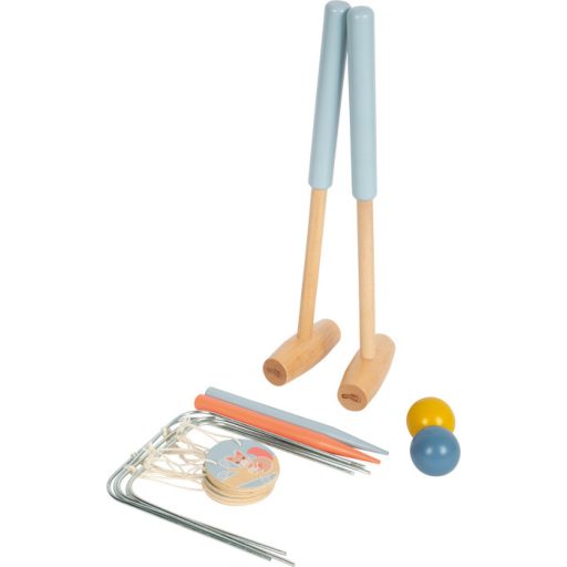 Klasszikus kültéri ügyességi játék bájos állatos kapukkal (sün, mókus, nyuszi, cinege, béka). A masszív fa készlet pályája a korhoz és tudáshoz igazítható, így mindenki sikerélményt kap. A földbe szúrható kapuk függő dekorcímkéi látványosak és jól jelzik a célokat. A két részből csavarható ütők kompakt tárolást tesznek lehetővé, hordtáskával érkezik - parkba, kertbe, strandra egyaránt tökéletes. Mozgás, koncentráció, sok nevetés.