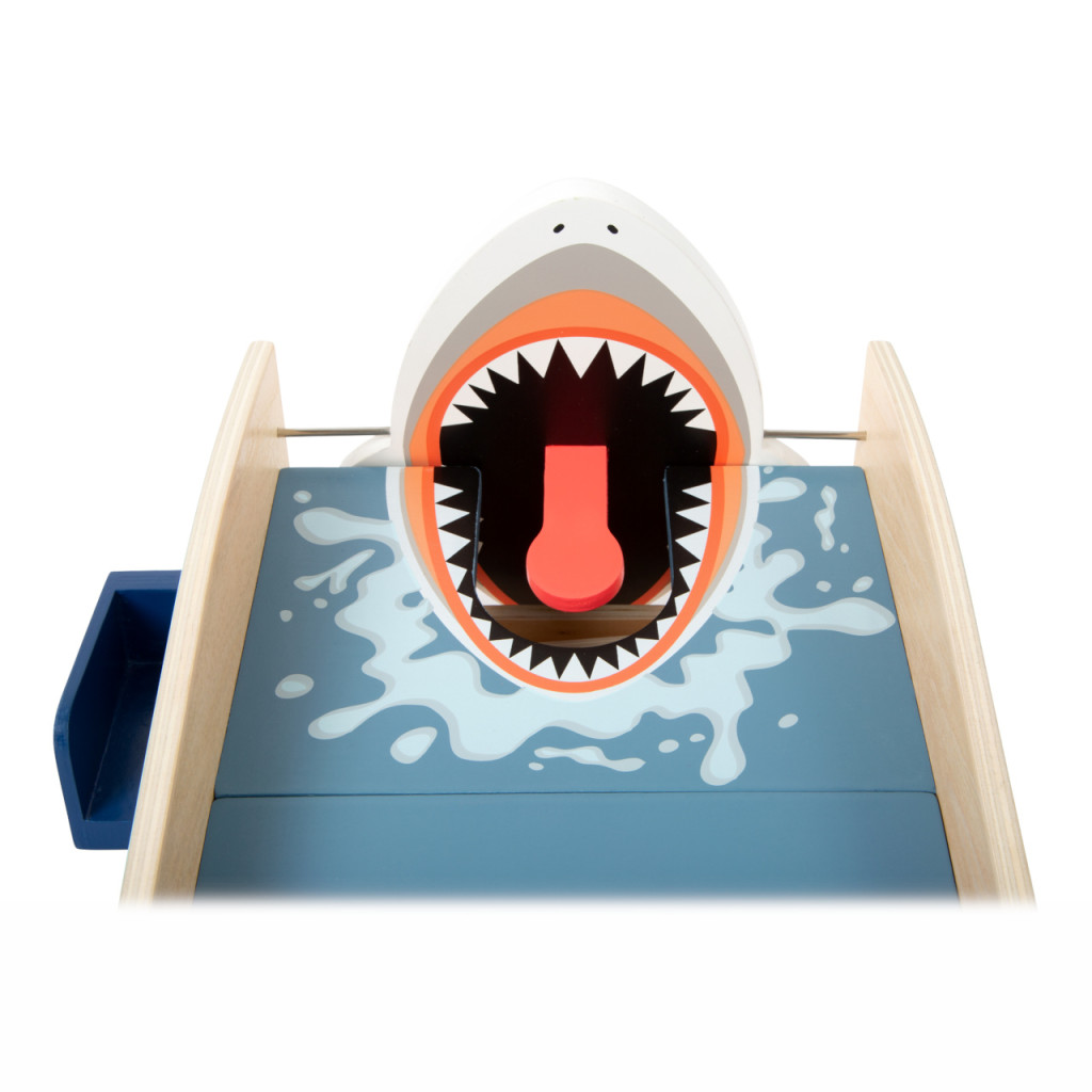 Teljesen fából készült készlet két ütővel és 4 labdával. A cápa „bekapja” a labdát és oldalról visszaadja - vicces, többjátékos élmény.