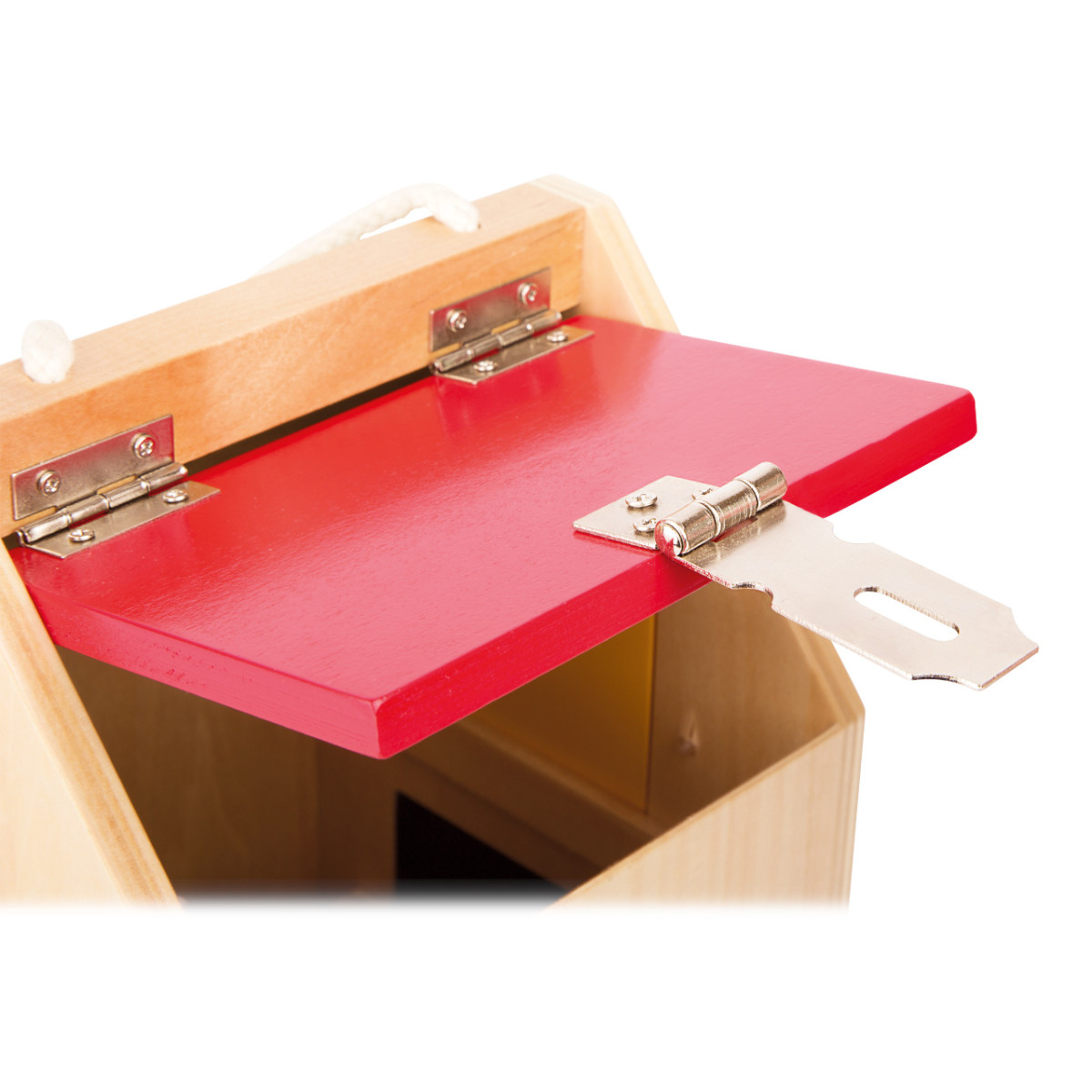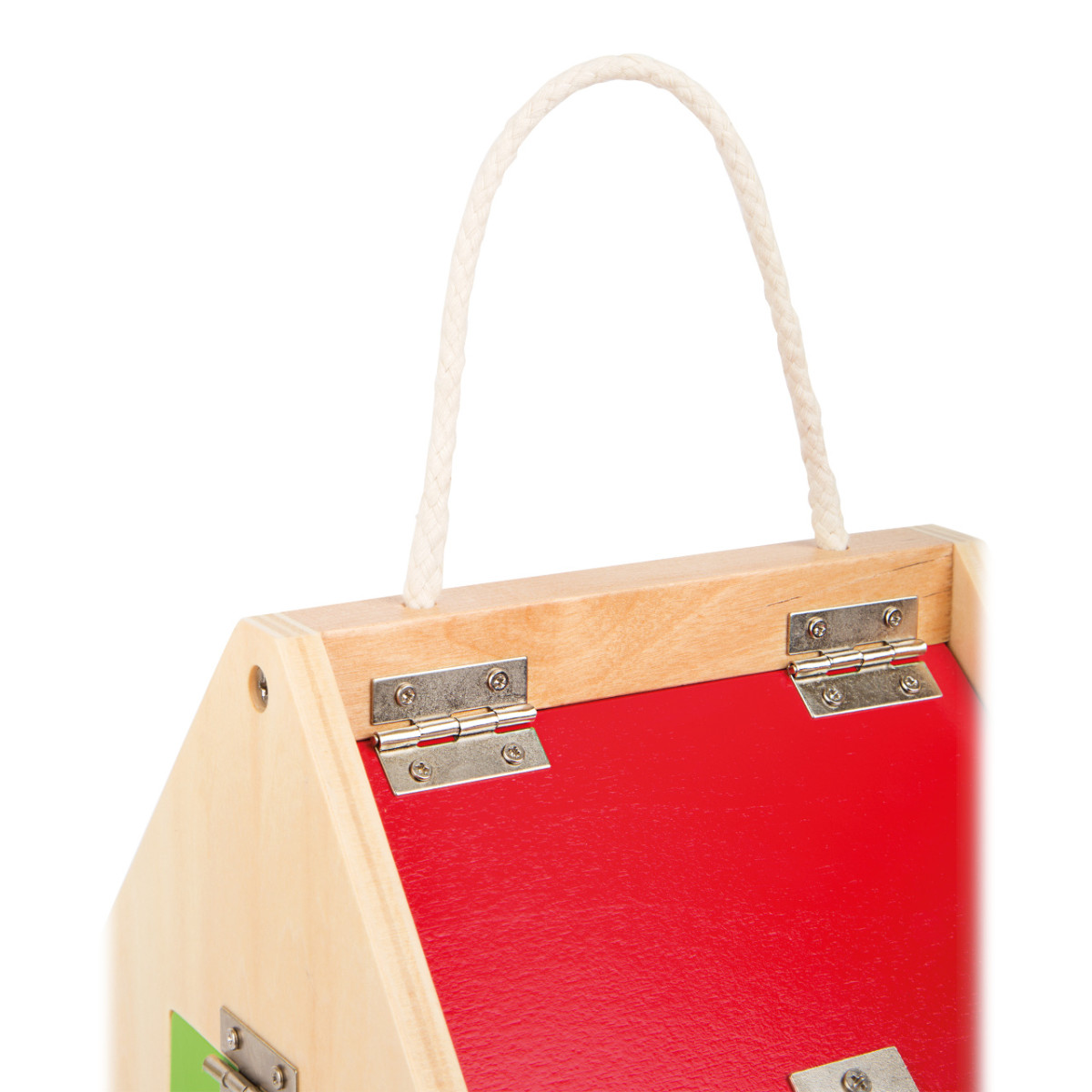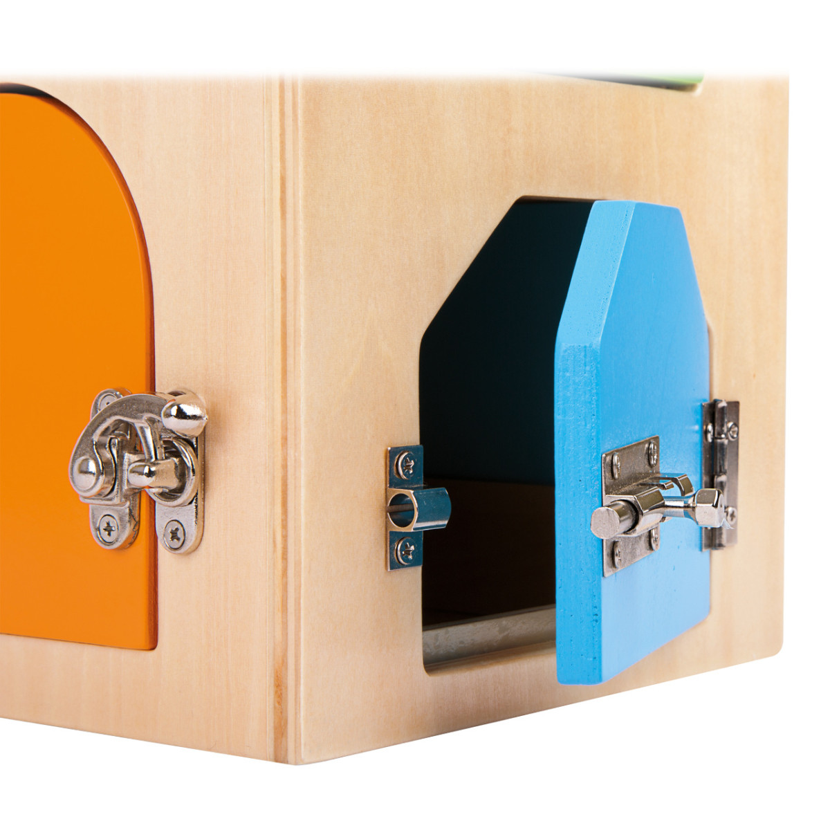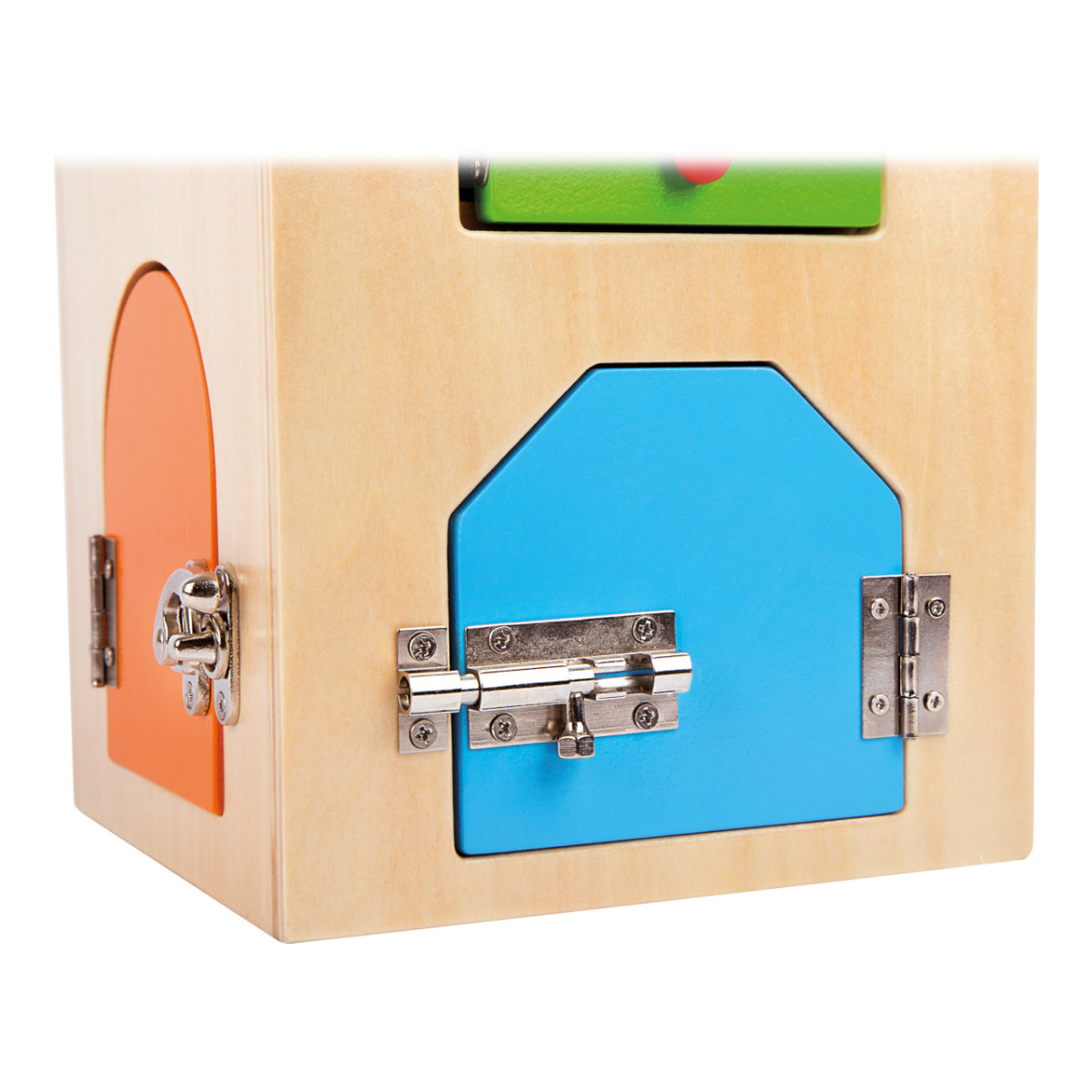 Kiváló minőségű fa házikó különféle zárakkal: U-lakat, cilinderzár, reteszek, karok, pántok és biztonsági lánc. A gyerekek játékosan sajátíthatják el a mindennapi finommotorikus mozdulatokat. Könnyen szállítható, tartós és szálkamentes anyagból készült, így nagyobb igénybevételt is kibír.