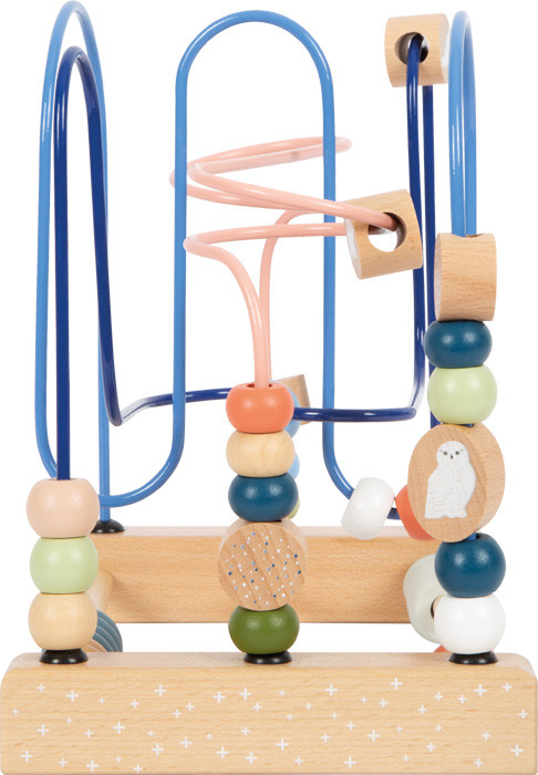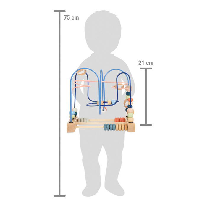 Három, színre hangolt fémpálya fa gyöngyökkel és csúszkákkal, plusz „abakusz” sínek gyűrűkkel. Finommotorika, számolási kedv és szem-kéz koordináció fejlesztése.