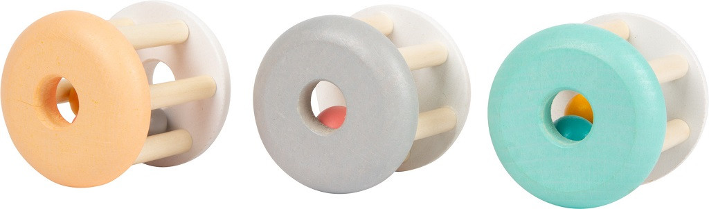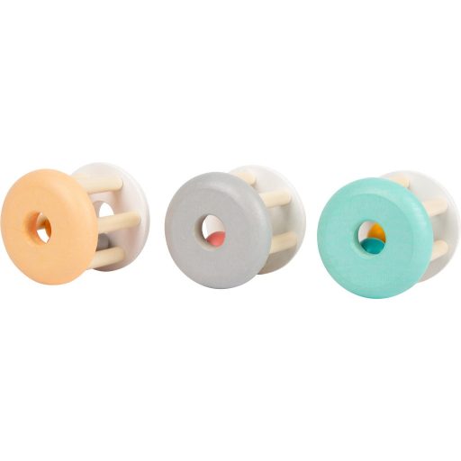 Ez a modern, pasztell türkiz színű fa csörgő ideális választás a legkisebbek számára. Könnyű és praktikus kialakítása segíti a baba első fogási próbálkozásait.