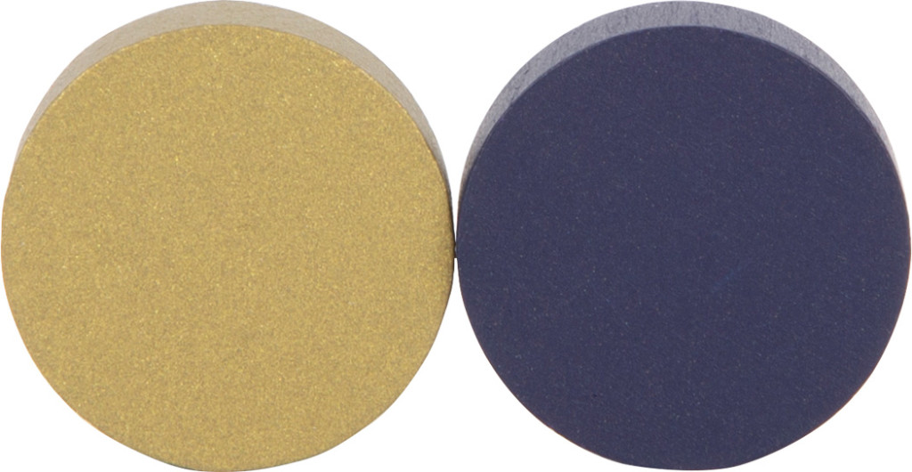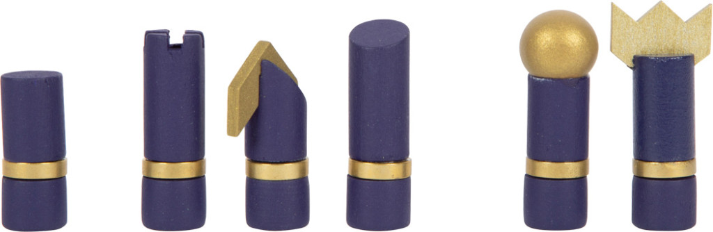 Stílusos 2 az 1-ben készlet éjféli kék, fekete/fehér és arany részletekkel. Kétrészes, mágnesesen illeszkedő tábla; masszív fa bábuk és korongok; prémium tárolódoboz.