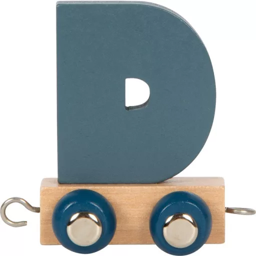 A D betűs fa vonatkocsi a Polar betűvonat sorozatból. Kombinálható mozdonyokkal és más betűs kocsikkal, nevek, szavak kirakásához. Lekerekített élek, arktiszi színek, dekoratív és oktató játék.