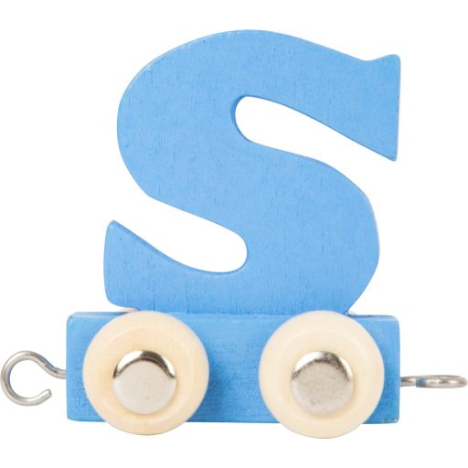Ez a kék „S” betűs fa kocsi bármely névvonatba illeszthető. Játék közben a gyerekek betűismerete is fejlődik.
