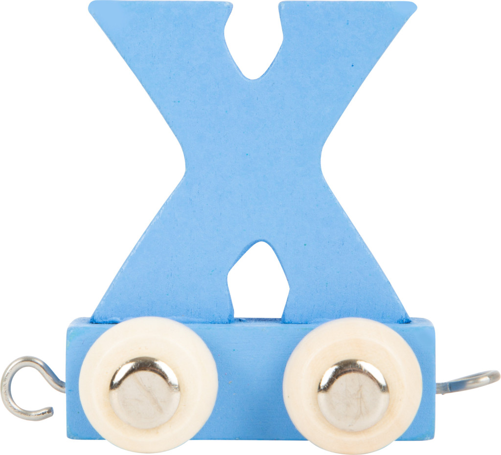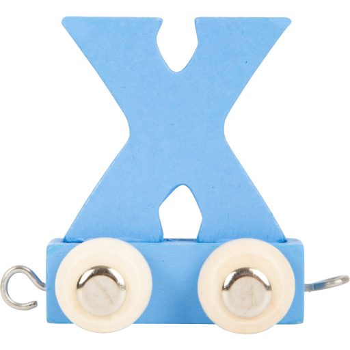 Ez a fából készült kocsi a kék „X” betűvel igazi különlegesség a névvonat kollekcióban. A betűs kocsikat összekapcsolva szavak vagy nevek állíthatók össze. Masszív kialakítása miatt tartós, és örömet szerez a gyerekeknek.
